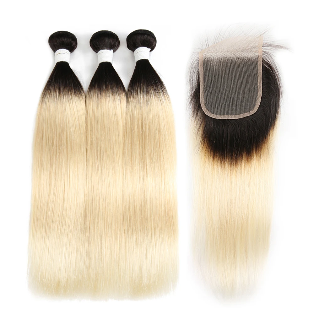 Good Chance for Brazilian Straight Human Hair Weaves With Lace Closure X-TRESS Honey Blonde 613 Ombre Color Non-rem