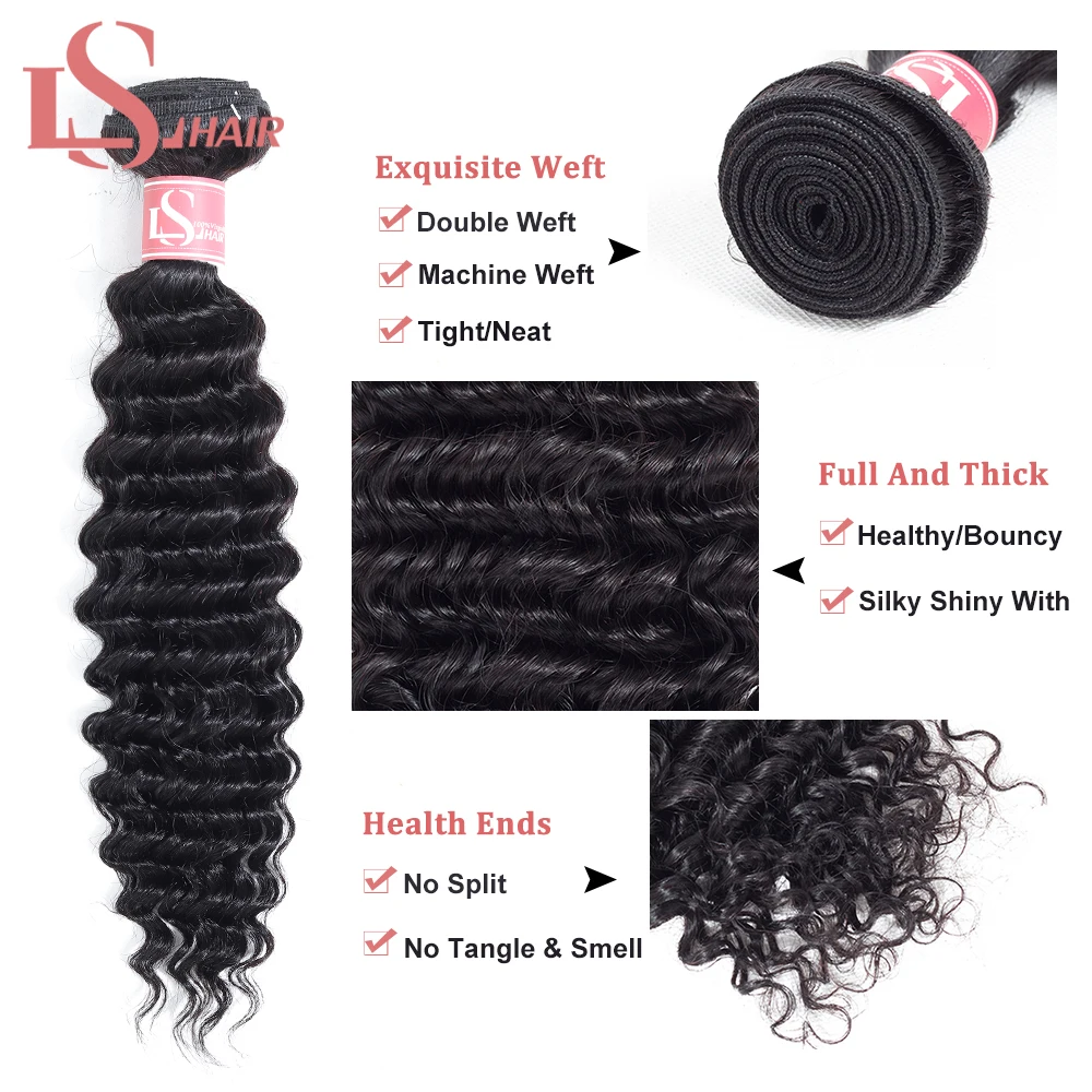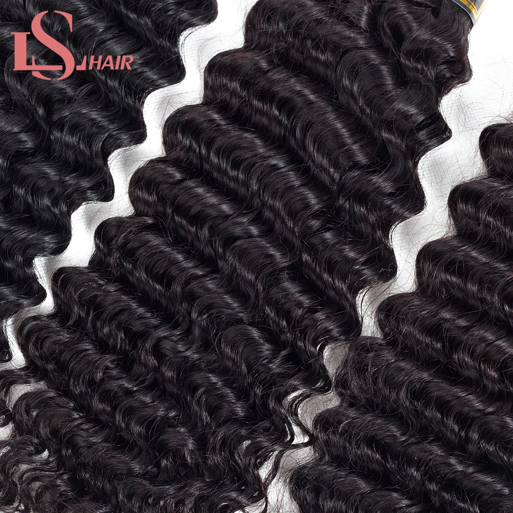 LS Hair Deep Wave Bundles With Closure Brazilian Hair Weave Bundles With Closure Remy Human Hair 3