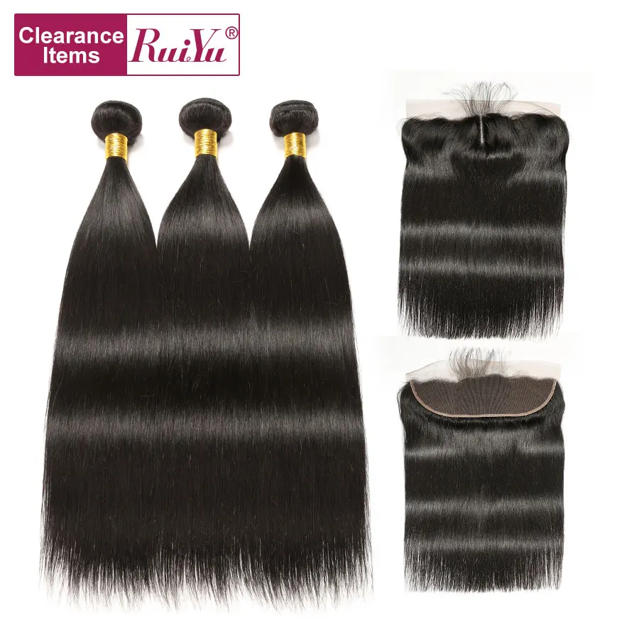 Brazilian Straight Hair Bundles With Frontal Non- Remy Human Hair Bundles With Closure RUIYU Hair W