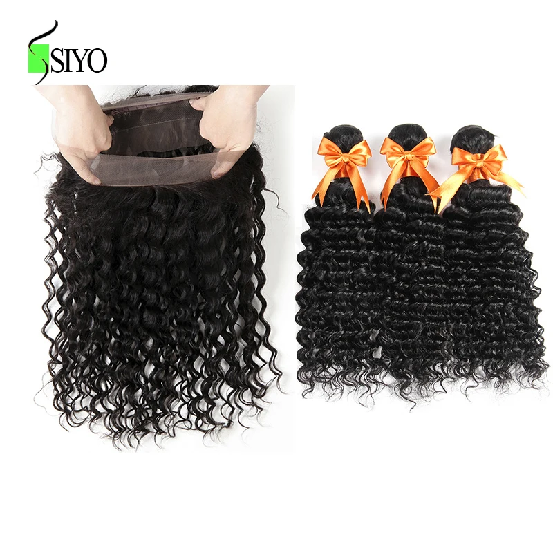 New arrival SIYO 360 Lace Frontal Closure with Bundles Peruvian Deep Wave Human Hair 360 Frontal with Baby Hair