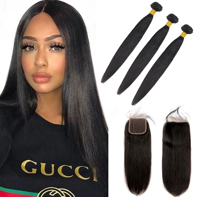Peruvian Hair Bundles With Closure Straight Human Hair Bundles With Lace Closure Non Remy Hair Weave Bundles Natural Color