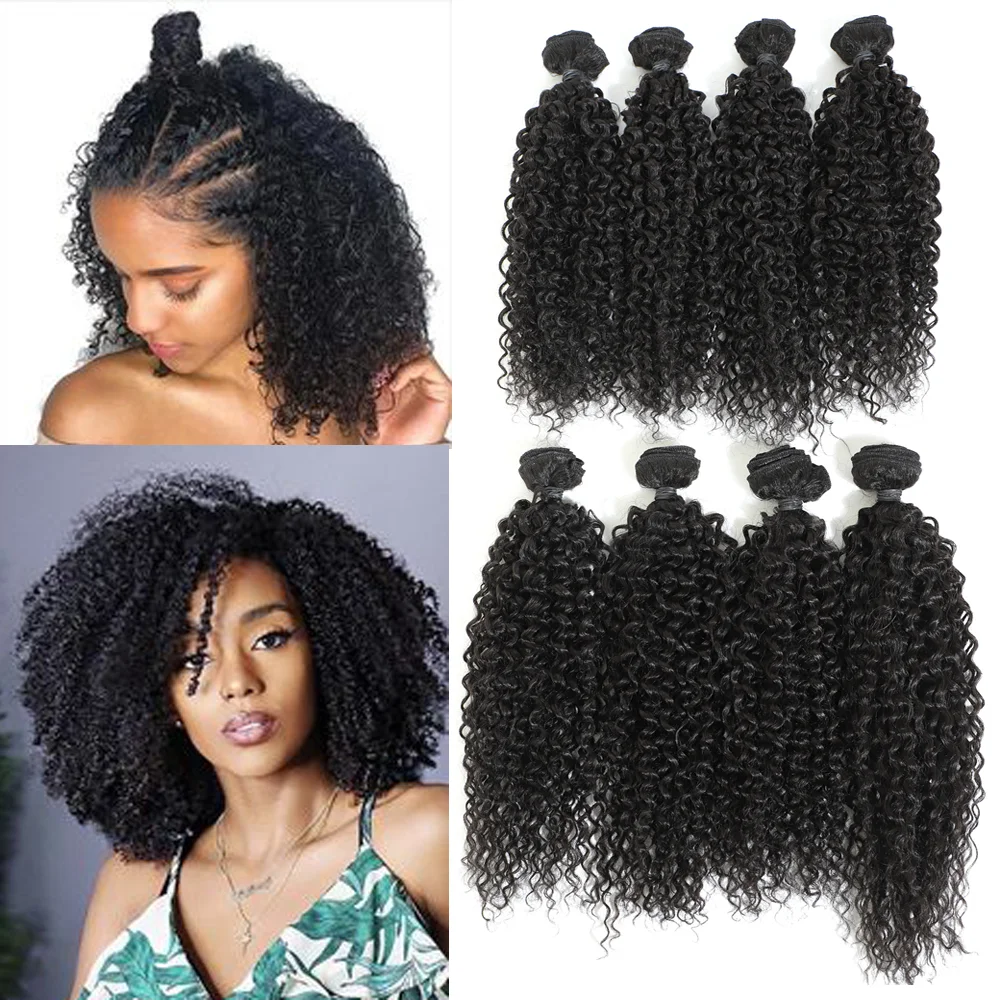 Afro Kinky Jerry Hair Extensions Natural Black Synthetic Curly Hair Weaves 8 Pieces All In One Pack For Full Head 14" 16" 240g