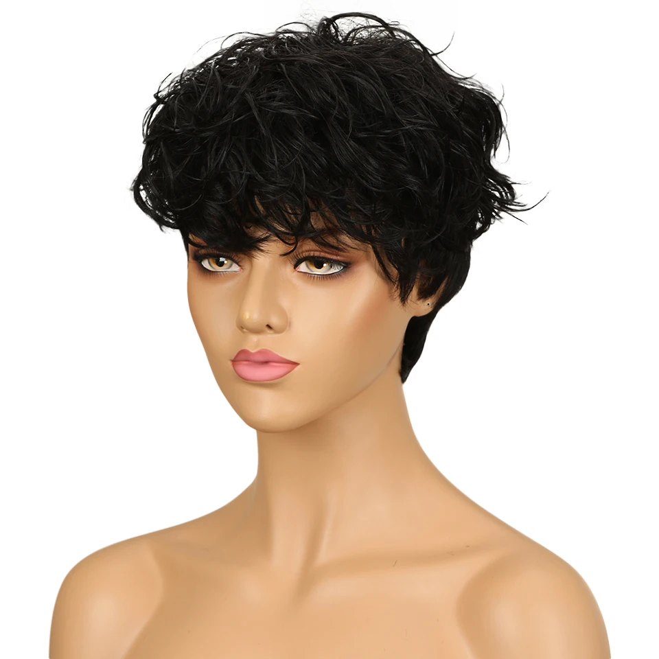 Sleek Kinky Curly Human Hair Wig Brazilian Human Hair Wigs For Black Women Curly Short Bob Wig Pixie cut wig Free Shipping