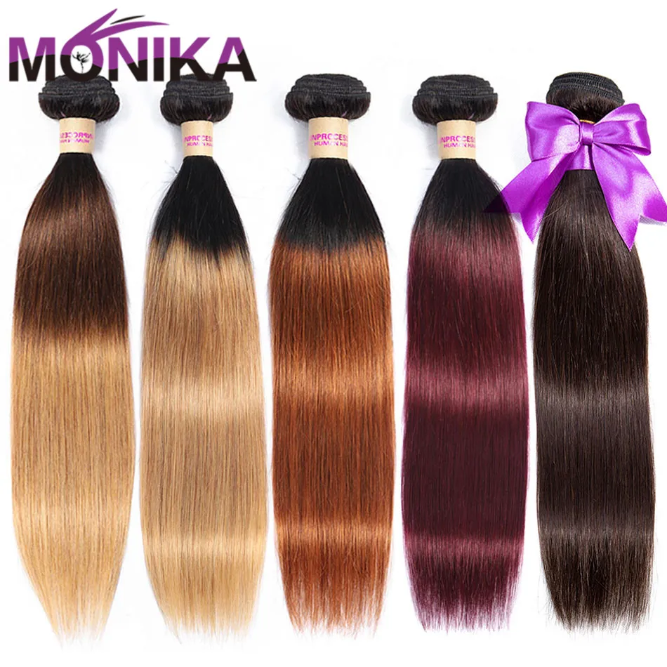 Monika Colored Hair Bundles Brazilian Straight Hair Bundles Human Hair 3 Bundles Ombre Weave Hair N