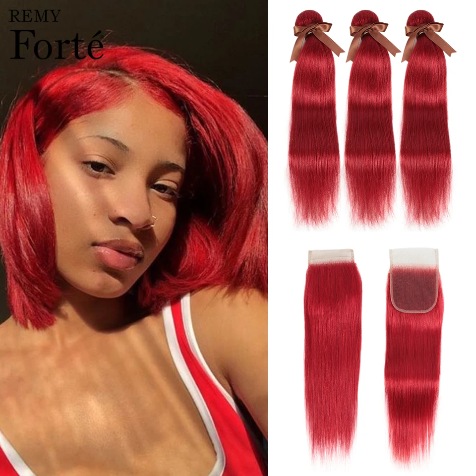 Hot deal Remy Forte Straight Hair Bundles With Closure Red Bundles With Closure Peruvian Hair Weave Bundles