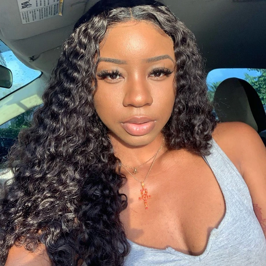 Onecut Curly fake scalp lace front human hair wigs for black women brazilian Deep Wave long wig preplucked with baby hair 13x6