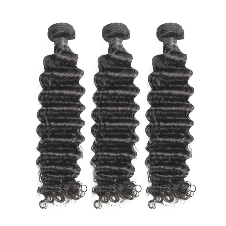Refurbished Price of deep curly wave 3 bundles with closure brazilian hair weave bundles short long virgin natural human