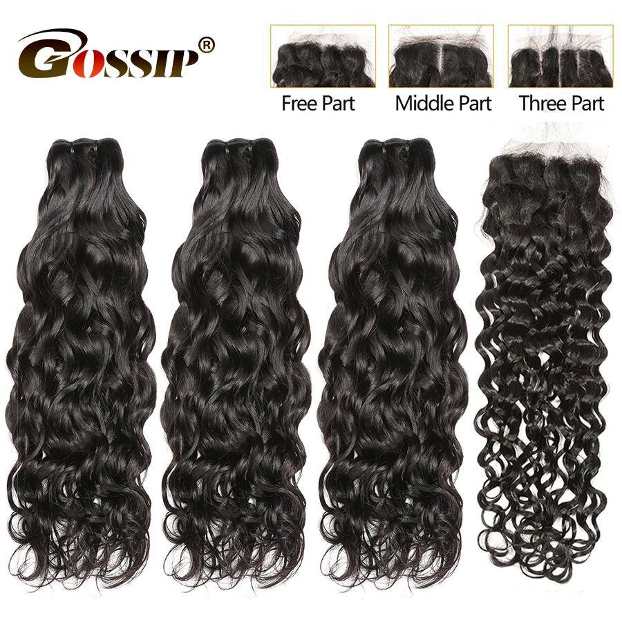 Remy Water Wave Bundles With Closure Brazilian Hair Weave Bundles Gossip 4 Bundles With Closure 30