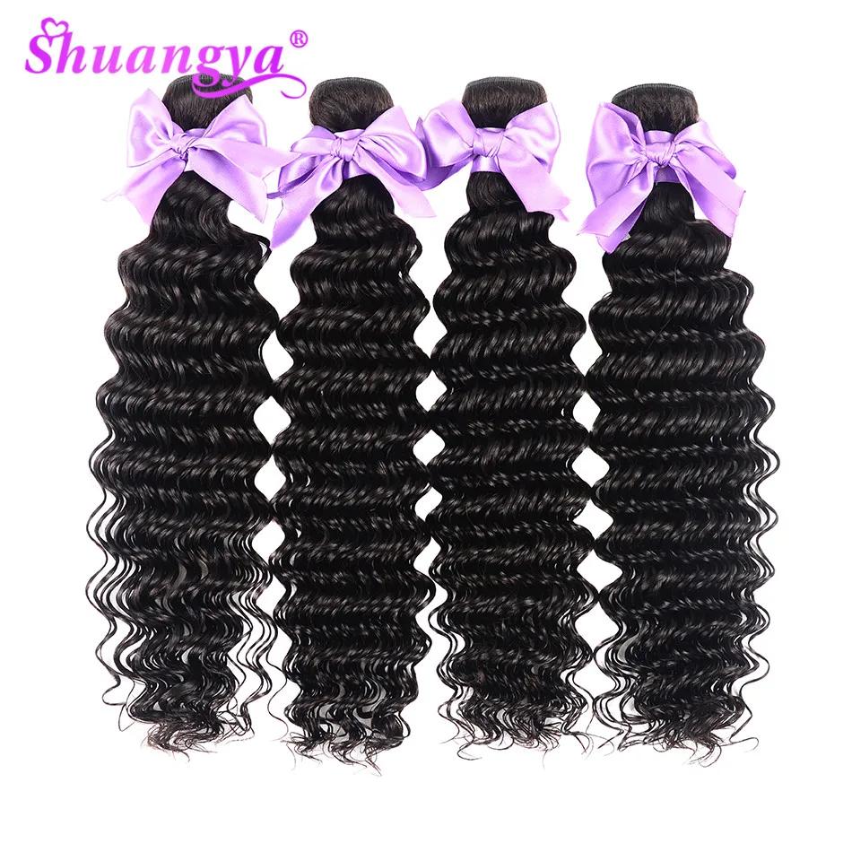 Shuangya Hair Brazilian Deep Wave Bundles 1/3 Or 4 Hair Extension 8-28 Inch Human Hair Bundles Natural Color Remy Hair Weave